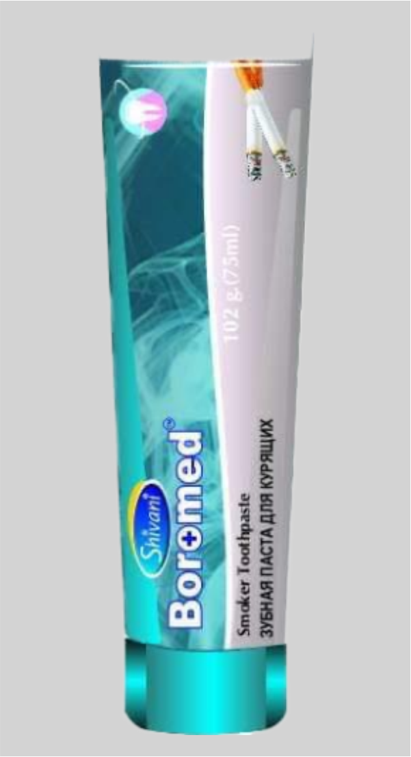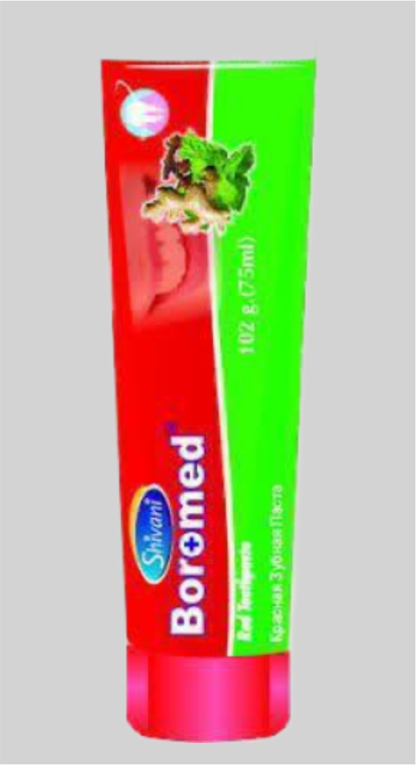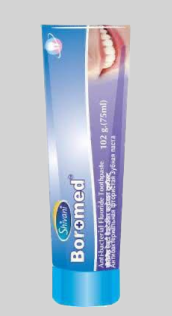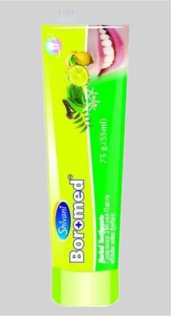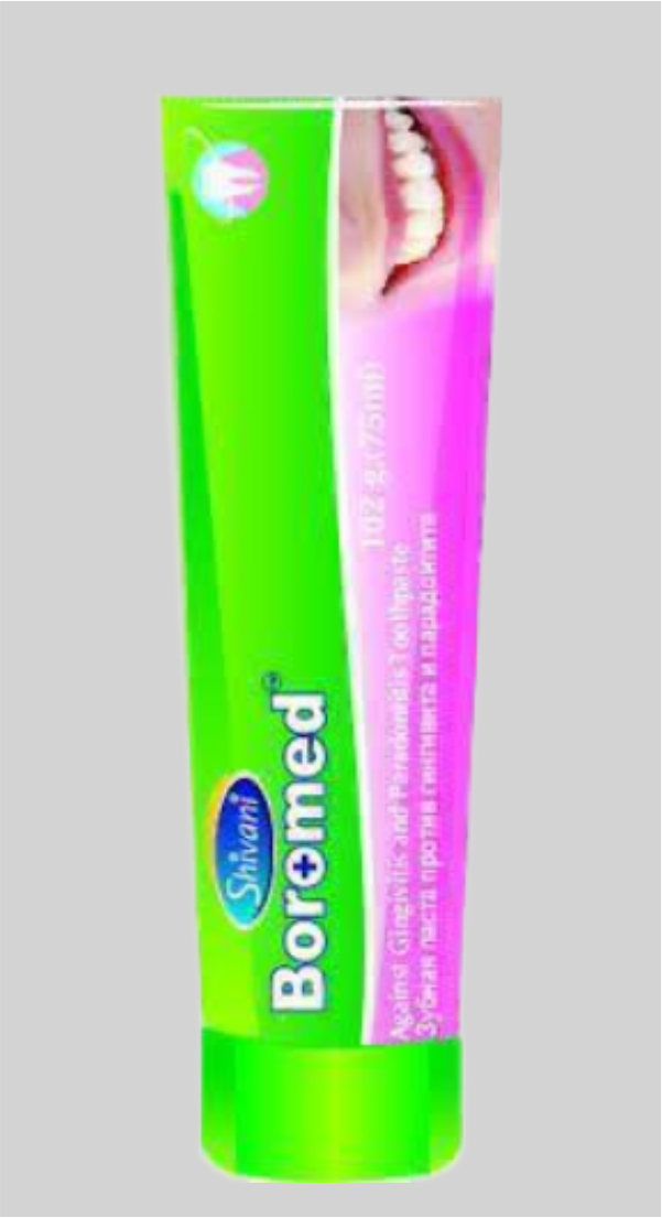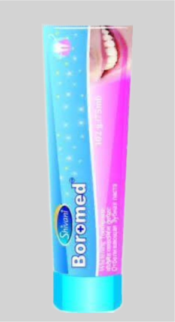 Зубная паста Boromed от «Shivani International», Индия обеспечивает 360-градусный уход за полостью рта и защиту сверкающих белизной зубов. Он безопасно очищает полость рта, борется с кариесом и освежает дыхание. Состав способствует и помогает повторно нанести необходимые минералы на эмаль, делая зубы более крепкими и устойчивыми к разрушению. Он эффективно, но в то же время мягко уменьшает обесцвечивание и пятна от чая, кофе, курения и т. д., а также полирует зубы, безопасно для эмали.